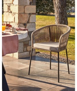 EZIO Silla con reposabrazos en cuerda de poliéster y estructura de acero galvanizado y cojín de asiento