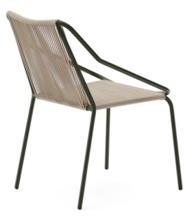 Cómoda silla con brazos en cuerda de poliéster ecru, estructura en acero galvanizado verde muy resistente a la intemperie. Extremadamente práctico para interior o exterior, podrás sacarlo en los meses de verano para estar al aire libre y disfrutar de tu jardín o terraza en compañía de amigos. Un estilo mediterráneo, fresco y atrevido, que combina modernidad con tradición. El diseño y las generosas dimensiones del asiento garantizan una experiencia de comodidad única. A continuación encontrará otros accesorios de la misma línea.