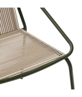 EDFU Silla con brazos en cuerda sintética ecru y patas de acero galvanizado verde para exterior