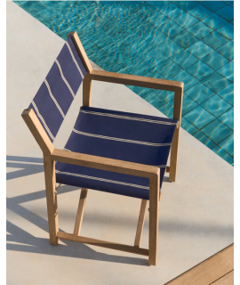 Silla de director, elegante, ligera y muy estable. Cómoda con una fuerte estructura de madera maciza de acacia tratada, asiento y respaldo en tejido de malla, diseñado para resistir el sol y las inclemencias del tiempo. Refinado y funcional, decora con gusto su jardín. Es plegable y se puede almacenar fácilmente, ocupando un espacio mínimo cuando no está en uso. Hermosa y práctica silla de director, atemporal e icónica. Una pieza que combina estilo y comodidad.