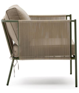 EDFU Sillón en cuerda sintética ecru y patas de acero galvanizado verde para exterior