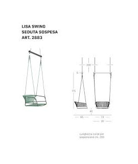 LISA SWING Asiento de columpio suspendido en acero galvanizado pintado y cuerda náutica, elección de color para hogar o contrato