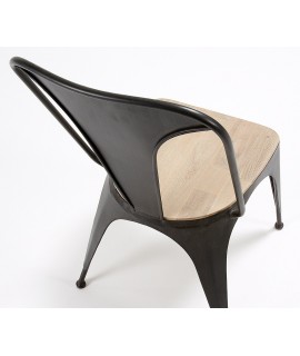 Silla de metal, ideal para salas de estar y terrazas. Su estilo original de los materiales metálicos industriales le dan una personalidad diferente. Debe ser observado su comodidad, aunque con los materiales metálicos del grafito, asiento en madera de acacia natural.