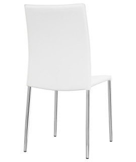 Una silla hermosa y práctica, hecha con una estructura fuerte en acero pintado y asiento y respaldo tapizados, tapizados en ecopiel suave disponible en los colores: blanco, moka o negro. Acabado, sólido y robusto, también es adecuado para hoteles, restaurantes o bares.