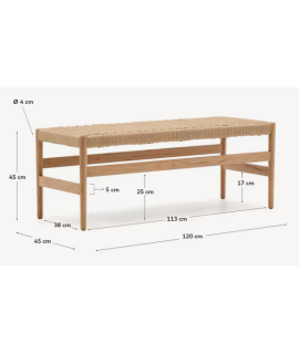 Las banco fabricadas en roble macizo tienen la característica de ser muy duraderas y resistentes y mantienen su belleza inalterada con el tiempo. Con cómodo asiento en cuerda muy resistente. Una banco maravillosa en la taberna, en una cocina rústica o de diseño, encantadora en la terraza. Elegancia, naturalidad, diseño y confort. Capacidad máxima de 240 Kg. Todas las medidas están indicadas en la foto de la ficha técnica. A continuación encontrarás otros complementos de la misma línea a juego.