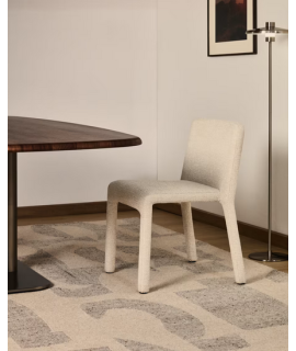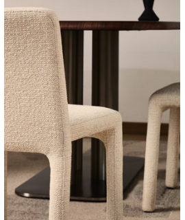 Una hermosa y refinada silla apilable, cuyas líneas audaces realzan su decoración. Acolchada y tapizada en tela de chenilla 3D texturizada con acabado repelente al agua. Extremadamente cómoda y elegante, es un accesorio de decoración único y exclusivo.