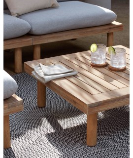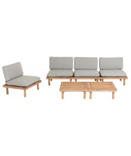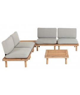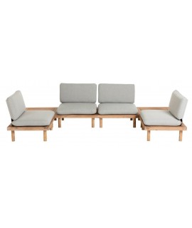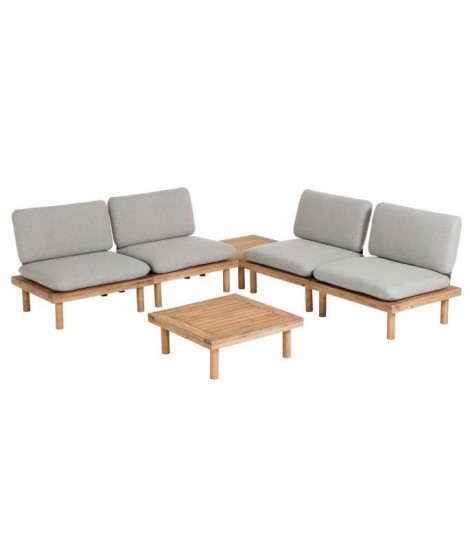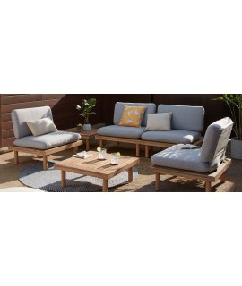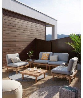 CIELO Conjunto de exterior compuesto por 4 sillones y 2 mesas de madera de acacia con cojines
