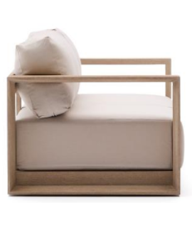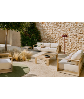 Elegante sofá en madera maciza de acacia con un acabado ligero que resalta las formas cuadradas de esta línea minimalista y moderna. Con cómodos cojines incluidos, en tejido desenfundable, para garantizar un confort adicional. Cómodo y agradable. Ideal para combinar con otros accesorios de la misma línea que podrás encontrar a continuación, para amueblar con estilo tanto interiores como exteriores. Maravilloso para casa u hoteles, B&B, casas rurales.