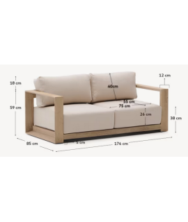 LINKA Sofá de 2 plazas 174 cm en madera maciza acacia con acabado claro para terrazas jardín exterior e interior casa o masías