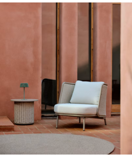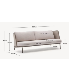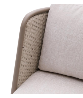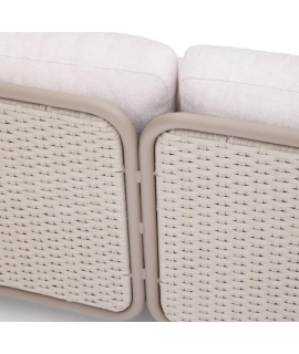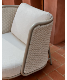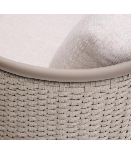 Fascinante sofá con estructura de aluminio con recubrimiento de polvo de color gris paloma claro, cuerda tejida a mano y cojines desenfundables de tejido hidrófugo de color crudo. Sólido y resistente a la oxidación, herrumbre, corrosión, intemperie y rayos UV. Perfecto para casa, jardín, balcón o terraza. Ideal para tus espacios exteriores. Capacidad máxima de carga de 380 kg. Todas las medidas estan en la foto de la ficha técnica. A continuación encontrará otros accesorios de la misma línea.