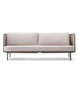 Fabuloso sofá que añade un toque de encanto atemporal a cualquier habitación. Realizado con estructura de aluminio color gris paloma y ratán sintético tejido a mano, cojines desenfundables, repelente al agua y resistente a los rayos UV. Un sofá sólido y ligero, cómodo y resistente. Un estilo encantador que destaca por su diseño ligero y contemporáneo. Apto para uso exterior o interior, ideal para jardín o terraza.