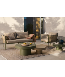 Cómoda sofá en cuerda de poliéster ecru, estructura en acero galvanizado verde muy resistente a la intemperie. Extremadamente práctico para interior o exterior. Un estilo mediterráneo, fresco y atrevido, que combina modernidad con tradición. El diseño y las generosas dimensiones del asiento garantizan una experiencia de comodidad única. A continuación encontrará otros accesorios de la misma línea.