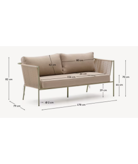 EDFU Sofá 178 cm en cuerda sintética ecru y patas de acero galvanizado verde para exterior