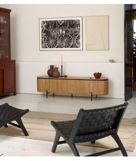 Línea cautivadora para este elegante y prestigioso aparador o mueble para TV. En madera maciza de mango dispuesta en listones yuxtapuestos, hacen de este mueble TV una pieza única, que destila esencialidad y refinamiento. Un maravilloso mueble, que transmite luminosidad al ambiente.