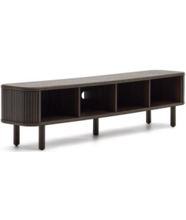 AFRO Mueble TV 200x50h cm con 2 puertas correderas chapada en acabado ceniza oscuro efecto listones