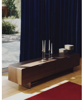 Para complementar una pieza única y llamativa, presentamos un soporte de TV elegante y refinado, de aspecto minimalista, que se adapta perfectamente a las necesidades de decoración actuales. Con estructura de chapa de nogal y acabado con barniz de poliuretano, garantiza resistencia al desgaste y la humedad. Cuenta con cuatro puertas con bisagras de cierre suave y sistema de apertura mediante tirador con cierre suave. Los tiradores son de acero inoxidable con acabado satinado, que reduce la visibilidad de huellas dactilares y arañazos, y presentan un diseño inclinado para un mejor agarre. La madera cuenta con certificación de bosques gestionados. A continuación, se muestran los accesorios a juego de la misma línea. Todas las medidas se muestran en la foto de la ficha técnica.