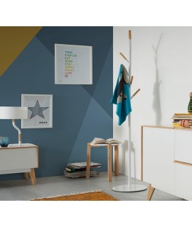 Maravilloso y práctico perchero de metal blanco y ganchos de madera de caucho natural, para que cada día sea más fácil colgar chaquetas o abrigos cómodamente. Un perchero que combina a la perfección con la entrada de tu hogar.