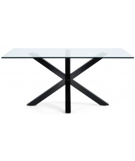 ATLAS Mesa fija de diseño de 160 o 180 o 200 cm con tapa de cristal y patas de acero negro