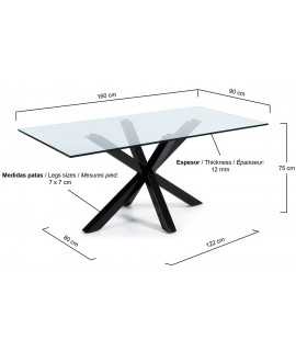 Mesa refinada, moderna y versátil. Con una maravillosa base de cruz en metal pintado epoxi negro, es particularmente resistente, con una maravillosa tapa de cristal templado. Los tamaños disponibles están en las fotos de las fichas técnicas.