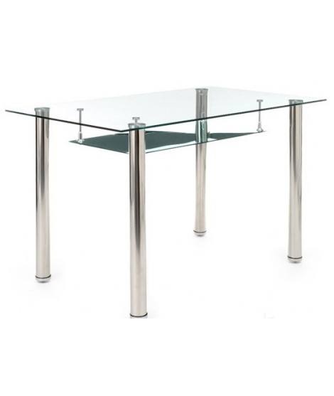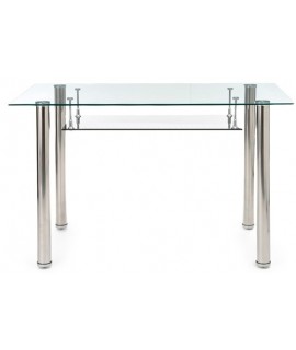 Elegante escritorio tenso 1670 mm claro templado 8 mm de vidrio. con estante de vidrio y metal cromado. Tamaño cm l. 120xP. 70xH. 75.
