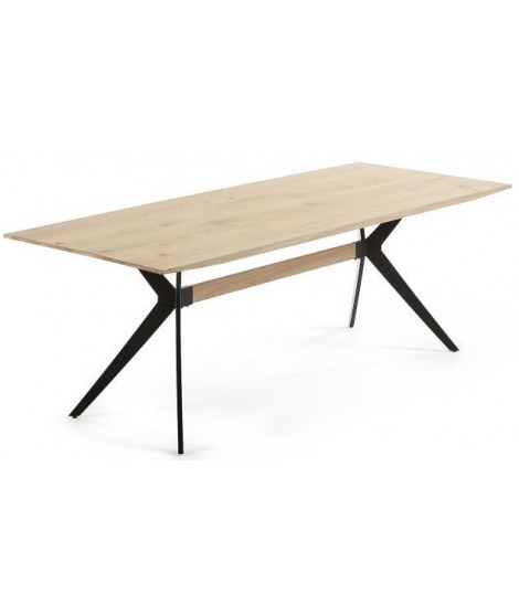 Maravillosa mesa de alta calidad a un precio muy conveniente. La dedicación en la selección de materiales, el estudio y el diseño dan forma a esta mesa de diseño, intrigante y preciosa. Refinado y sobrio. Hecho con acero pintado epoxi negro y estructura de roble y tapa de madera maciza de roble blanqueado.