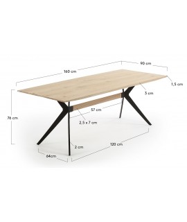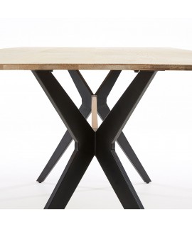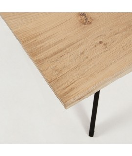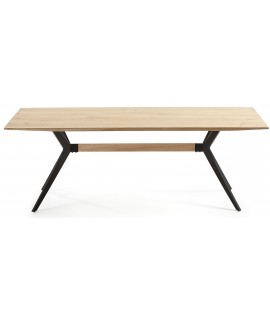 Mesa elegante, moderna y de diseño. Para amueblar tu hogar con gusto y hacerlo más acogedor. Base, arenosa y particular, en acero pintado epoxi negro y madera de roble. Tapa sólida y resistente en madera maciza de roble blanqueado.