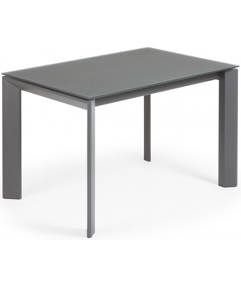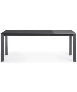 CLARISSA Patas de metal antracita de 140 o 160 cm y sobre de cristal templado en color mesa extensible