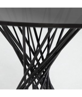 CROMO mesa de 120 cm de diámetro con sobre de cristal ahumado y base de metal negro