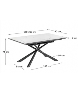 AKARON Mesa 160 extensible 210 cm con tapa en vidrio cerámico y patas en metal pintado con muebles de diseño