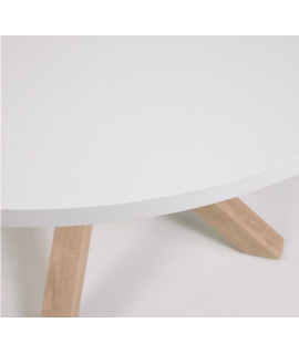LIVREA mesa diam 120 cm tapa blanca y base de metal en color madera diseño