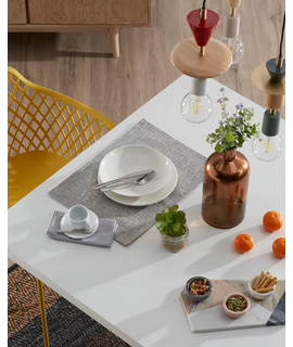 Mesa rectangular fija con base de metal blanco y tapa de MDF de malamina blanca. Disponible en tres tamaños. Adecuado para muebles modernos. Todas las medidas están en la foto de la ficha técnica.