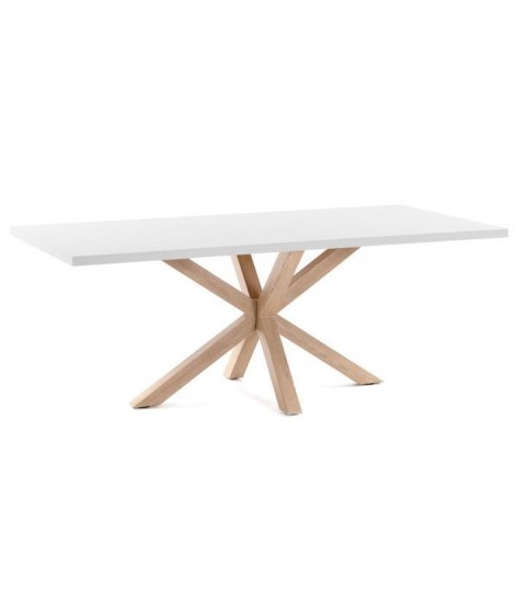 AVOCADRO Mesa fija de 160 o 180 o 200 cm patas de acero color madera y tapa de melamina blanca