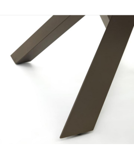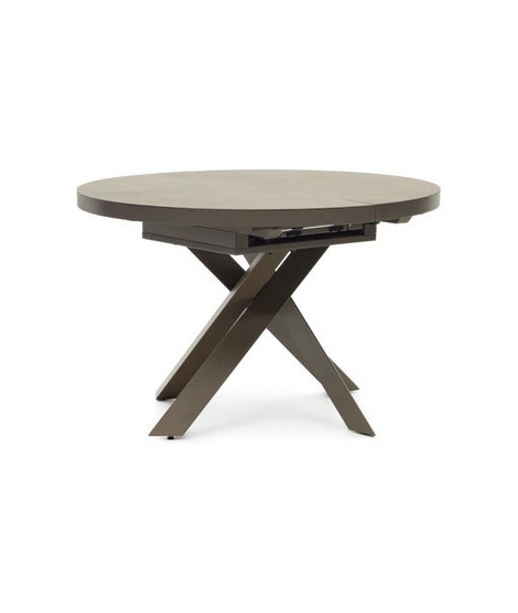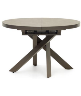 BOSTON Mesa extensible Ø 120 - 160 cm con tapa de cristal cerámico y patas de metal pintado marrón muebles de diseño
