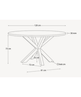 Mesa fija redonda con gran tapa de cristal templado negro de 12 mm de espesor y patas cruzadas de metal pintado efecto madera. Es la mesa de diseño a elegir si prefieres un estilo moderno y elegante en tu hogar. Apto para todo tipo de muebles. Protecciones regulables en los pies para proteger el suelo y corregir posibles desniveles. En la foto de la ficha técnica todas las medidas.
