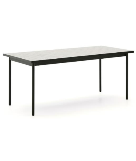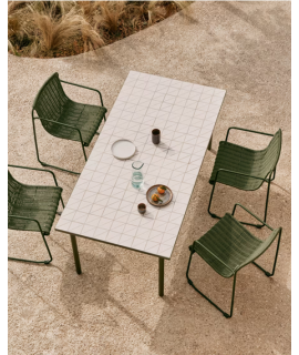 LABIA Mesa fija 182x91 en acero galvanizado verde y tapa de azulejo diseño para exterior e interior