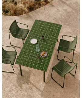 Fabulosa mesa con estructura de acero galvanizado pintado de color verde y tablero realizado con baldosas que crean un mosaico. Una agradable combinación de tradición y modernidad, que hace que esta mesa sea verdaderamente única. Un hermoso y limpio diseño de líneas geométricas y simétricas. Una mesa deliciosa, bella y elegante, donde podrás saborear todo el placer y la preciosidad de estar al aire libre. A continuación encontrará todos los elementos de la misma línea.
