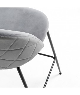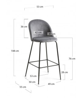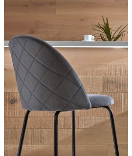 Taburete en metal pintado negro y asiento y respaldo en terciopelo gris. Adecuado para zona de aperitivos o península para su cocina, bar. Elegante y refinada estructura en metal cromado. Por un precio realmente bueno.