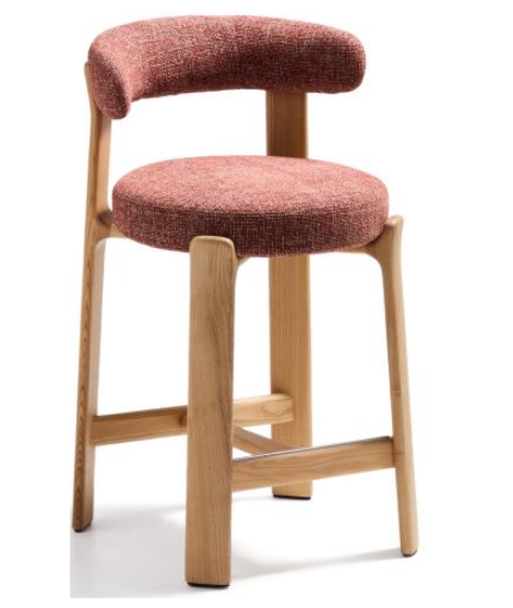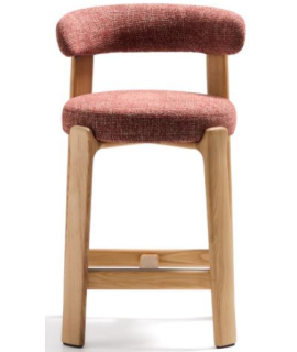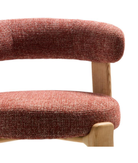 Preciosa y sólida taburete de línea elegante y look renovado, inspirada en el género escandinavo de los años 70. Muy refinado, con una fuerte estructura en madera maciza de fresno natural, destaca tanto por su estética como por su comodidad. Con asiento y respaldo acolchado revestido en tejido efecto chenilla color terracota. Intrigante, con un diseño esencial y un carácter fuerte.