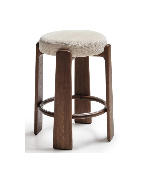 FABEST taburete alto 65 o 75 cm en tejido efecto chenilla beige y patas en madera maciza de fresno con acabado nogal
