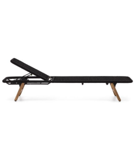 LINDA Tumbona de 4 posiciones con estructura de acero y cuerda negra y patas de madera maciza de acacia