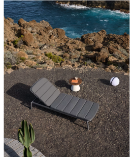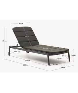 Tumbona fabricada con estructura de aluminio de alta resistencia al óxido y a la corrosión atmosférica, con cojín desenfundable. Una tumbona bonita, refinada y confortable. En la ficha técnica, desplazándose por las fotos con las flechas, están todas las medidas.