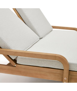 Fascinante y elegante diseño para esta tumbona doble, respaldo regulable en 4 posiciones, con estructura de madera maciza de eucalipto y con cómodos cojines incluidos, en tejido repelente al agua y desenfundables en tejido poroso de secado rápido, para garantizar una comodidad adicional. Cómodo y agradable. Cómodo con ruedas, podrás colocarlo fácilmente donde quieras, para tus momentos de relax. Maravilloso para casa u hoteles, B&B, casas rurales.