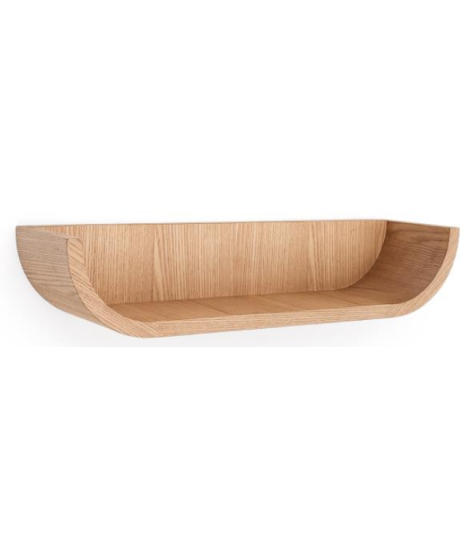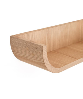 Líneas limpias y formas redondeadas para este estante. Fabricado en madera de fresno con acabado natural, le otorga a cada pieza una identidad única donde se aprecian los detalles característicos de la madera. Gracias a la versatilidad de su diseño, se adapta perfectamente a cualquier tipo de mueble, aportando luminosidad al ambiente.