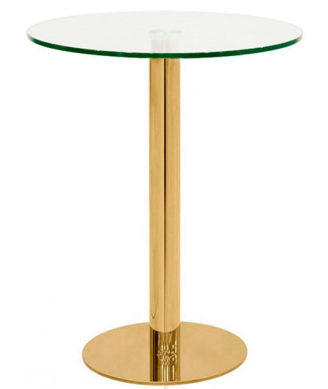 Table pour bars, glaciers, cafés, restaurants, hôtels, magasins. Fabriqué avec base et colonne ronde en acier inoxydable peint en laiton poli ou satiné et plateau rond en verre trempé de 13 mm d'épaisseur.