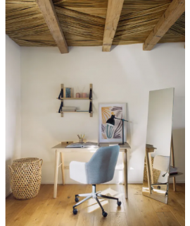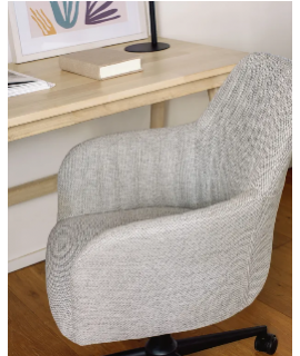 Chaise de bureau confortable et enveloppante avec roues et accoudoirs, pivotante et avec assise réglable en hauteur, adaptée pour travailler ou étudier. Grâce à la ligne de la structure, il garantit un confort maximal, il est idéal pour ceux qui restent assis longtemps. Avec housse pratique en tissu antitache et hydrofuge. Raffiné, confortable et élégant.