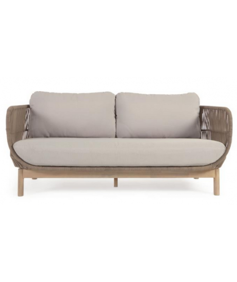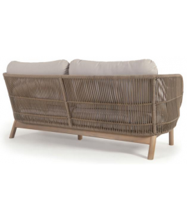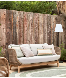 LENOR Canapé 3 places en bois d'acacia massif recouvert de corde et coussins amovibles
