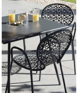 Une ligne fraîche, qui apporte raffinement et prestige à votre environnement extérieur, confortable et résistant aux intempéries. Cette collection est réalisée avec une structure en acier peint : blanc ou anthracite. Chaise qui a la caractéristique d'une haute résistance. Très solide, durable et résistant aux agents atmosphériques et aux rayons UV. Beau, élégant et design. Vous trouverez ci-dessous tous les accessoires de la même ligne à assortir. Empilable.