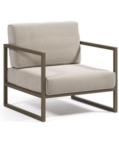 Fauteuil confortable et raffiné, adapté à l'intérieur, au salon, à la chambre, au bureau, au dressing, à la véranda ou également adapté à l'extérieur, grâce à la praticité des matériaux avec lesquels il est fabriqué. Structure légère en aluminium peint, fabriquée dans des ateliers locaux, réduisant les émissions de CO2 pour un impact environnemental moindre. Rembourrage en polyuréthane avec siège soutenu et revêtement en tissu en PET issu de bouteilles recyclées et à faible impact environnemental avec certificat OEKO-TEX® hydrofuge, amovible, lavable en machine et traitement résistant aux UV. Capacité maximale 130 Kg. Vous trouverez ci-dessous tous les accessoires de la même ligne à combiner. Toutes les mesures sont sur la photo de la fiche technique.