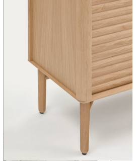 Buffet raffiné, avec des bords arrondis en relief et un travail artisanal raffiné des lattes, qui crée un jeu de lumière avec l'essence naturelle du bois de chêne. Un buffet pratique et délicieux.