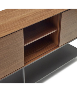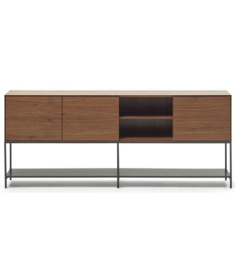 TODAY buffet ou meuble TV 195x80h cm avec 3 portes en placage de noyer et pieds en acier noir